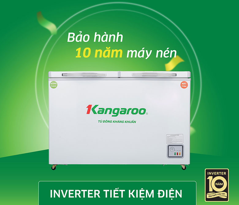 Tủ đông Kangaroo Inverter 230 lít KGFZ320IC2Muốn trữ nhiều đồ lâu ngày vẫn tươi ngon và trọn vẹn dinh dưỡng thì phải làm sao⁉️ Giải pháp cực đơn giản với sự trợ giúp của Tủ đông Kangaroo KGFZ320IC2! Cùng khám phá những công nghệ ưu việt của tủ đông kháng khuẩn Kangaroo thế hệ mới. Thiết kế trang nhã, hiện đạiTủ đông Kangaroo inverter 230 lít KGFZ320IC2 thiết kế nổi bật với gam màu trắng tinh tế. Thiết kế tủ đông với kiểu dáng nhỏ gọn, được sơn phủ 3 lớp chất lượng bền bỉ, chịu được rỉ sét và bền màu theo thời gian phù hợp với khí hậu nóng ẩm của Việt Nam. Tủ được gắn 4 bánh xe cứng cáp giúp việc di chuyển nhanh chóng.