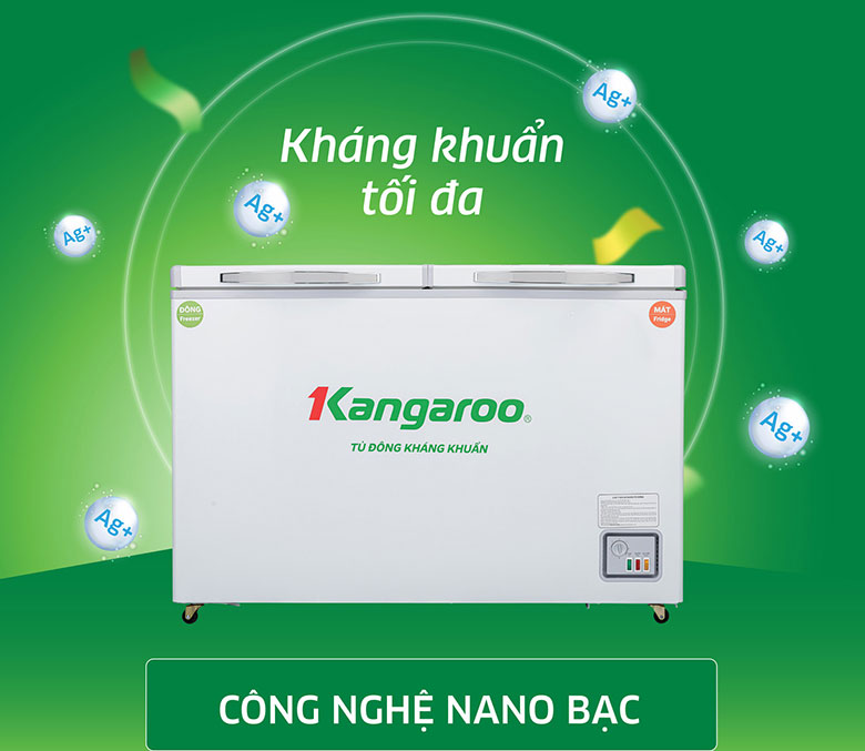 Công nghệ Nano Silver kháng khuẩn an toànTủ đông Kangaroo KGFZ320IC2 được tráng một lớp Nano bạc lên bề mặt lòng tủ. Công nghệ Nano bạc này giúp lòng tủ luôn sạch khuẩn, hạn chế gây mùi và nhiễm khuẩn chéo giữ thực phẩm tươi ngon lâu hơn đem lại cảm giác yên tâm khi sử dụng.