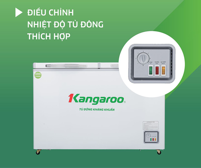 Vận hành êm ái, tiết kiệm điệnTủ đông Kangaroo KGFZ320IC2 được trang bị công nghệ Digital Inverter cao cấp cùng dàn lạnh bằng đồng nguyên chất độ bền cao, hiệu quả làm lạnh nhanh và sâu, giúp sản phẩm vận hành êm ái, tốc độ làm lạnh nhanh, tiết kiệm điện năng. Bên cạnh đó, tủ đông Kangaroo còn sử dụng dàn lạnh được làm từ chất liệu đồng cải tiến hơn so với dàn lạnh nhôm, độ bền cao, hiệu quả làm lạnh nhanh chóng.