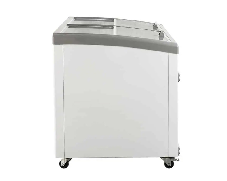 Chiếc tủ đông Alaska này với thiết kế cửa kính đặc biệt mở trượt lên (thay vì trượt ngang) cho phép ít nhất 2 khách hàng sử dụng tủ cùng 1 lúc.