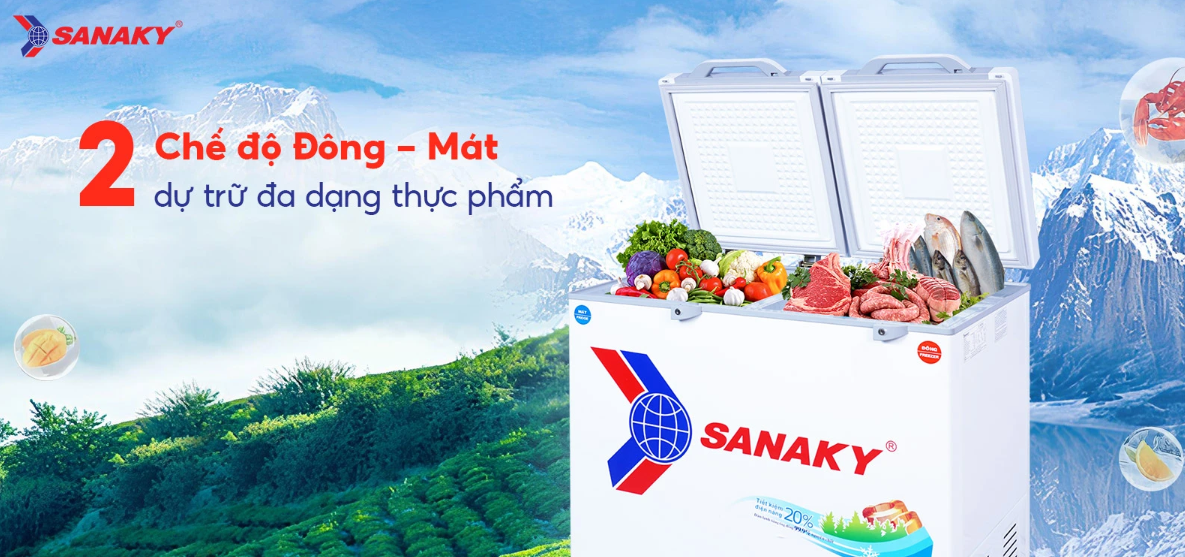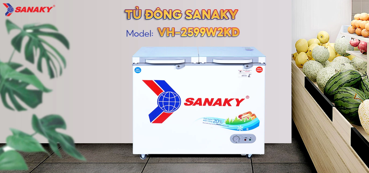 Thiết kế Tủ Đông Sanaky VH-2599W2KD gồm 2 ngăn đông – mát và 2 cánh mở giúp dễ dàng phân loại thực phẩm
