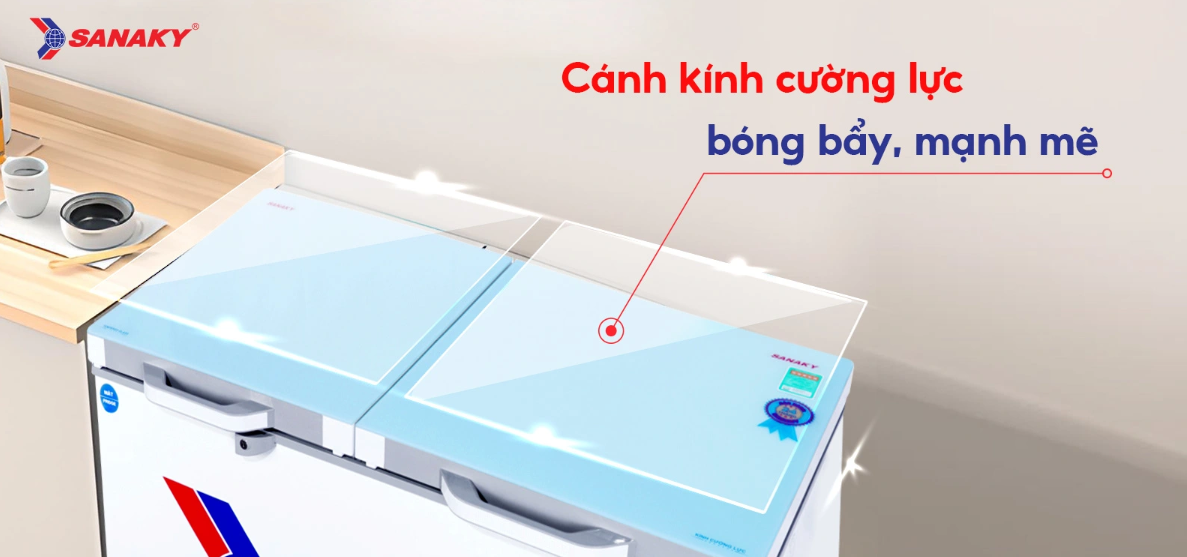 Với môi trường khí hậu nhiệt đới thay đổi liên tục như ở Việt Nam chính là tác động làm cánh thép thế hệ cũ dễ bị hoen rỉ. Lớp kính cường lực của tủ đông Sanaky giúp dễ vệ sinh lau chùi khi sử dụng