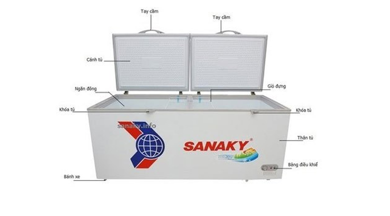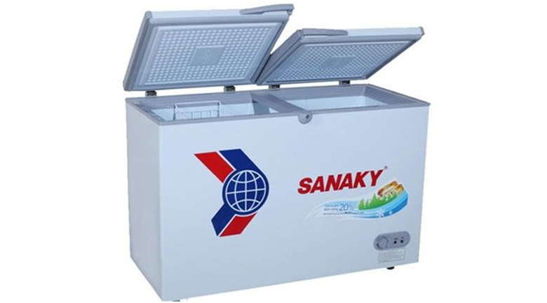 Sản phẩm tủ đông Sanaky có trang bị rổ đặt bên trong tủ, giúp việc bố trí thực phẩm được gọn gàng, khoa học, dễ dàng phân biệt và lấy thực phẩm khi dùng, trong cũng bắt mắt hơn. Tủ đông này sử dụng loại gas R143A thân thiện môi trường, đảm bảo sức khỏe cho người sử dụng.