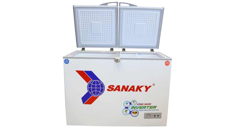 Tủ Đông Sanaky VH2899W3 Inverter có thiết kế 1 ngăn đông, 2 cánh mở vali, dễ sử dụng, hạn chế thoát nhiệt, tiết kiệm điện năng.Cửa tủ có khóa, an toàn sử dụng cho gia đình có trẻ nhỏ.