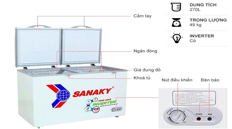 Tủ đông Sanaky cũng sử dụng quạt lồng sóc để nâng hiệu suất làm lạnh nhanh và sâu bên trong giúp thực phẩm luôn tươi ngon và an toàn cho sức khỏe người dùng.