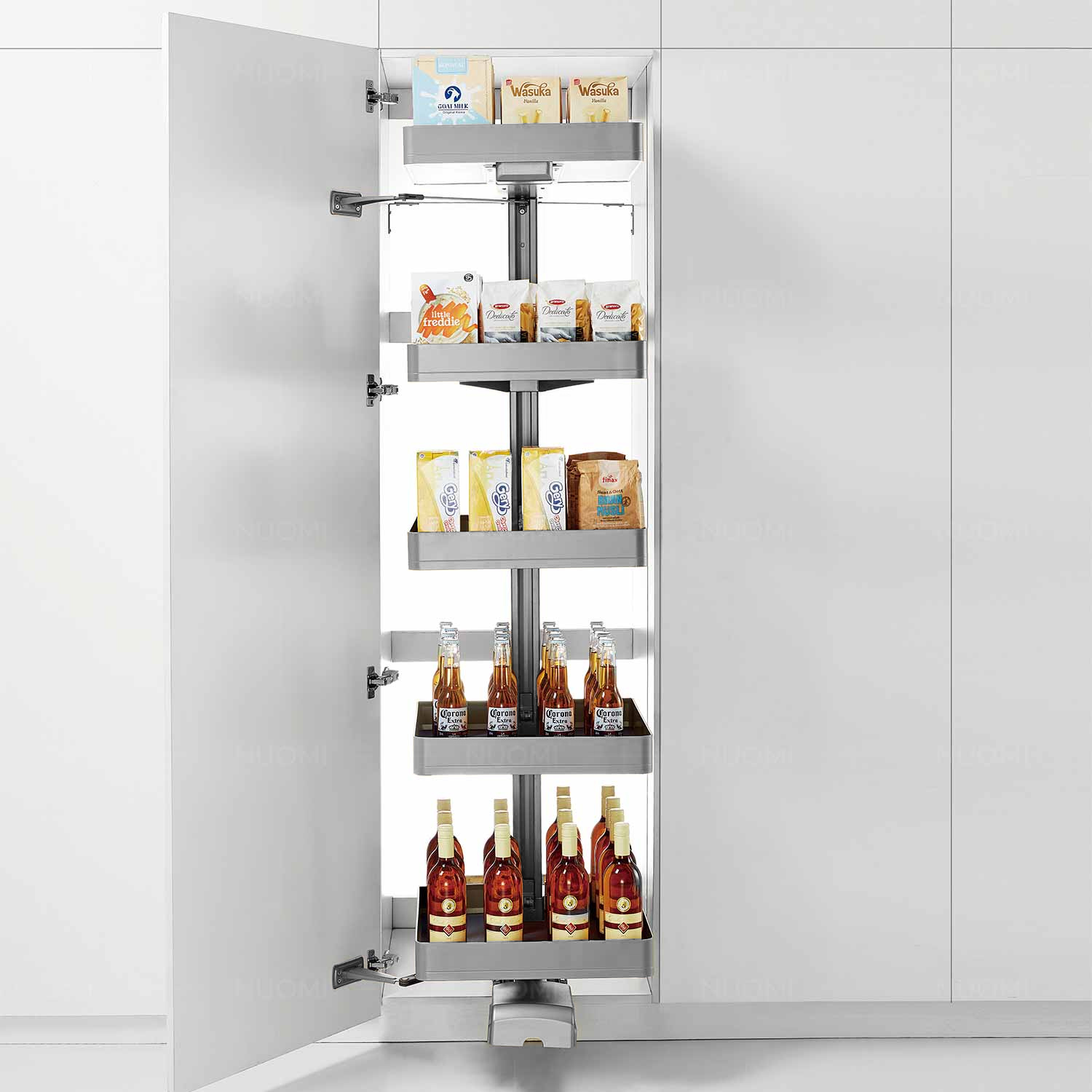Thay vì xếp đồ đạc một cách không khoa học tạo nên sự bề bộn cho bếp thì tủ kho sẽ đem tới cho bạn sức chứa vô cùng lớn giúp căn bếp luôn sạch sẽ, gọn gàng. Với thiết kế 5 rổ đựng cùng tải trọng 15kg/mỗi rổ, bạn có thể tha hồ cất gọn tất cả các vật dùng, đồ ăn.. vào khoang tủ phía sau cánh cửa tủ.
