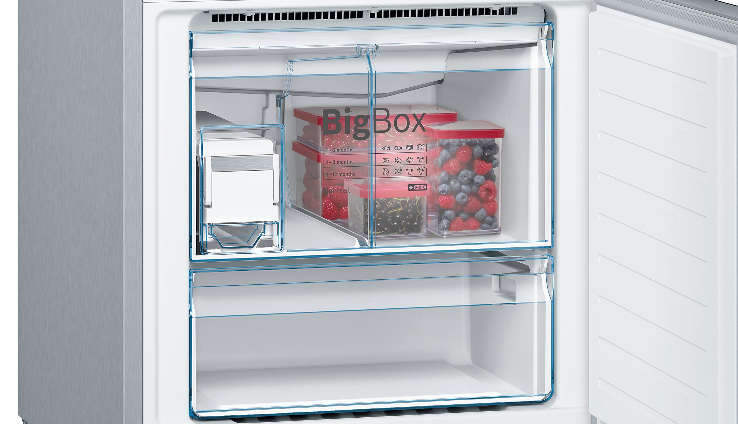 Công nghệ NoFrost của tủ lạnh Bosch KGN56LB40O sẽ hút độ ẩm không khí vào một thiết bị đặc biệt. Thay vì tích tụ bên trong thực phẩm khiến chúng bị đông đá. Hệ thống làm lạnh này sẽ tự động hút hơi ẩm ra và thỉnh thoảng còn tự động rã đông.