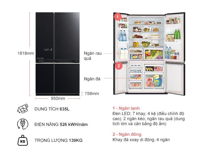 Tủ lạnh Mitsubishi Electric 635 lít MR-L78EN-GBK-V (4 cửa) được thiết kế mặt gương sang trọng, quyến rũ, bền bỉ và dễ dàng vệ sinh. Mặt kính cường lực với bảng điều khiển cảm ứng tiện ích. Tủ lạnh có dung tích cực lớn, rộng rãi và tiện nghi.