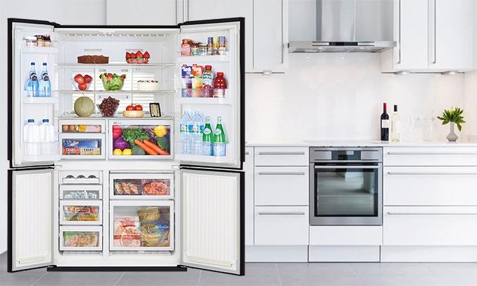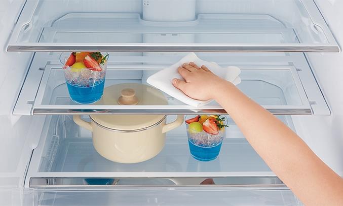 Tủ lạnh có hệ thống khay đựng và ngăn chứa linh hoạt, khay đá xoay di động tiện dụng, đèn LED chiếu sáng tốt và tiết kiệm hơn. Khay kính chịu lực đến 100 kg và dễ dàng chùi rửa.