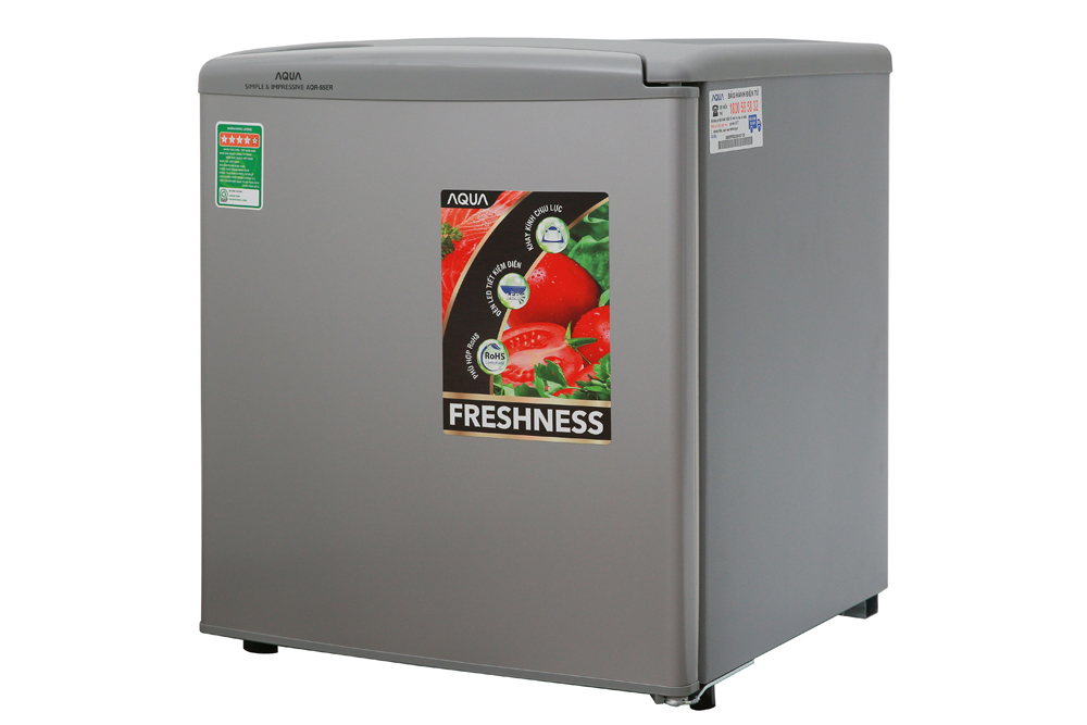 Tủ lạnh Aqua 50 lít AQR-55ER (SS) Xám Nhạt có thiết kế 1 cửa tiện lợi khi lấy đồ và kiểu dáng sang trọng, hiện đại phù hợp với mọi không gian, đặc biệt là những nơi chật hẹp. Với gam màu xám nhã nhặn khiến bạn có thể linh động đặt tại bất cứ vị trí nào trong gia đình mình.