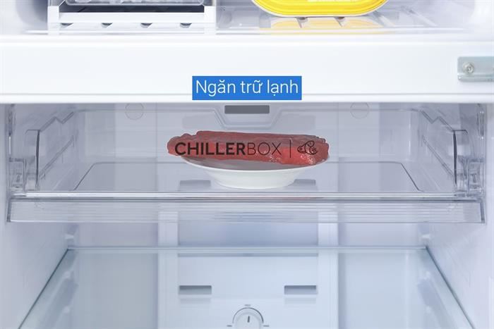 – Bên trong tủ lạnh có ngăn Fresh Box hữu ích khi lưu trữ các loại rau củ. Ngoài ra, ngăn trữ lạnh Chiller Box có trong tủ lạnh cũng là ngăn lưu trữ thích hợp với thịt, cá giúp bạn có thể nấu ngay, giữ trọn vẹn hương vị cũng như các hợp chất dinh dưỡng.