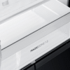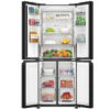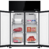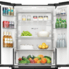 – Cửa tủ lạnh được thiết kế với mặt kính màu đen chủ đạo, mang lại vẻ hiện đại, sang trọng cho không gian bếp. Bề mặt này giúp việc vệ sinh tủ dễ dàng, chống trầy xước và giữ cho tủ lạnh luôn sáng bóng và mới mẻ.