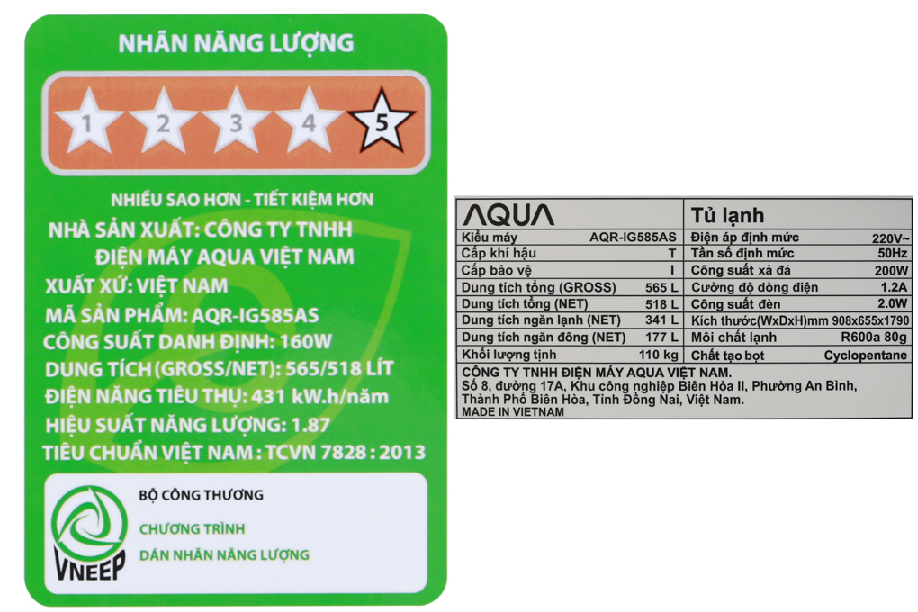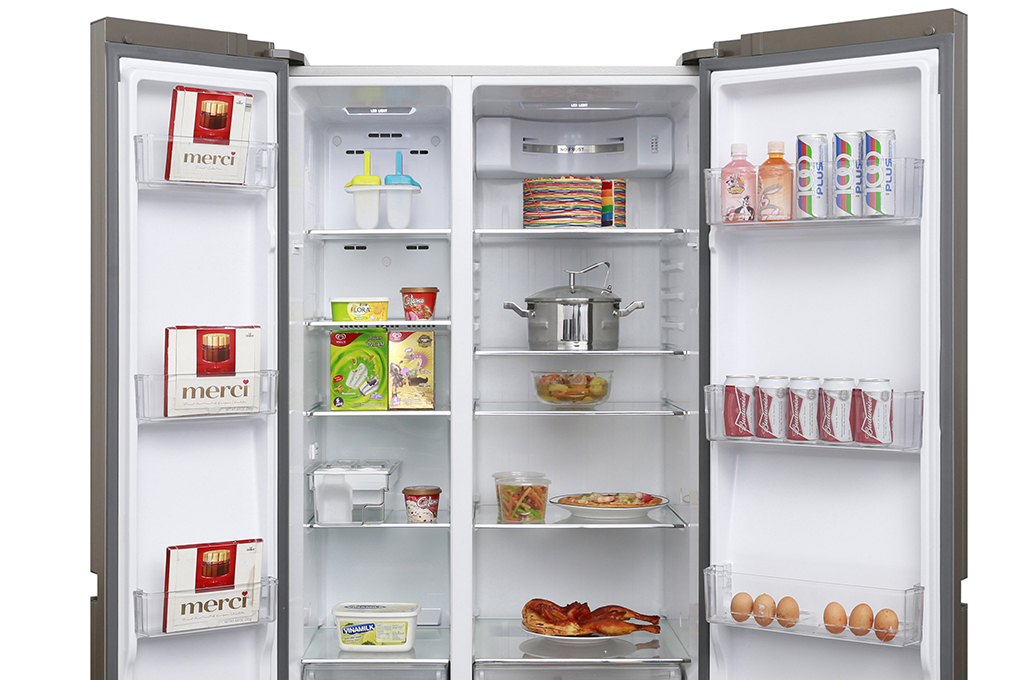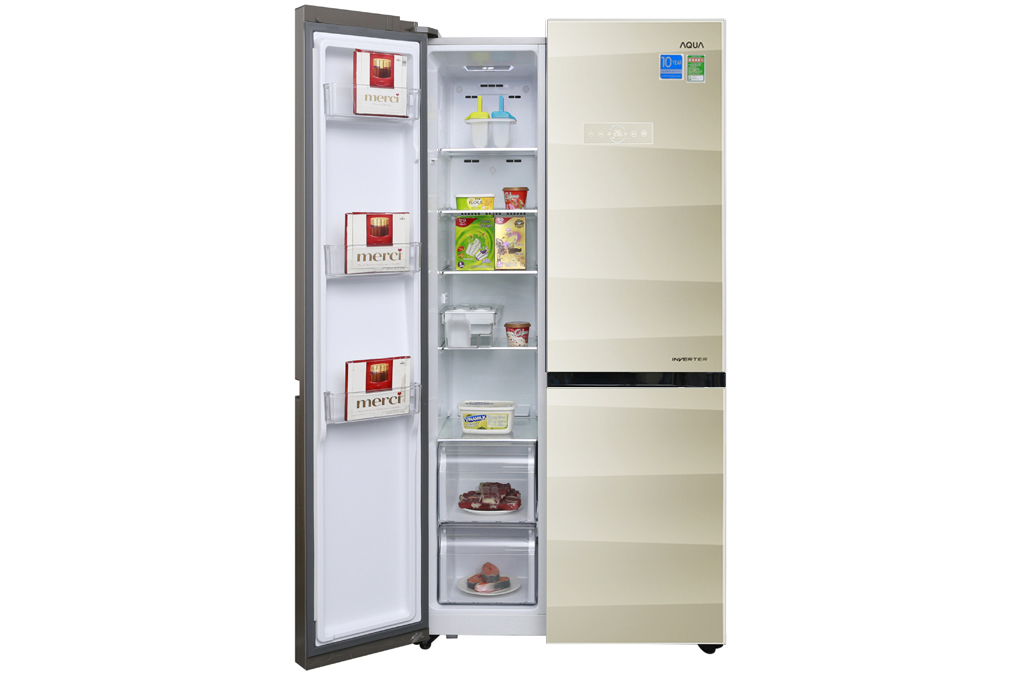Thiết kế kiểu dáng side by side với mặt kính cường lực sang trọng và lịch lãm, tủ lạnh Aqua AQR-IG585AS SG sẽ làm nổi bật lên gian bếp của gia đình bạn. Hơn nữa, với dung tích cực lớn, chiếc tủ lạnh Aqua 565 lít mang đến không gian lưu trữ thực phẩm thoải mái cho gia đình trên 5 thành viên.