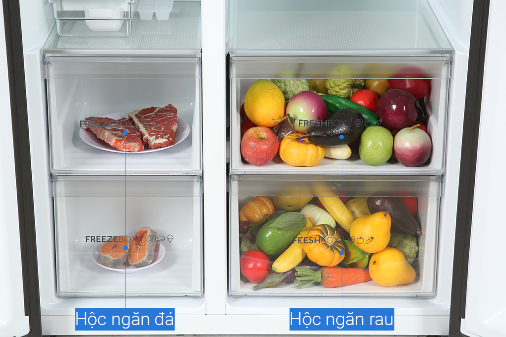 – Kiểu dáng: tủ lạnh Side by side hiện đại, kết hợp cùng sắc đen tinh tế.