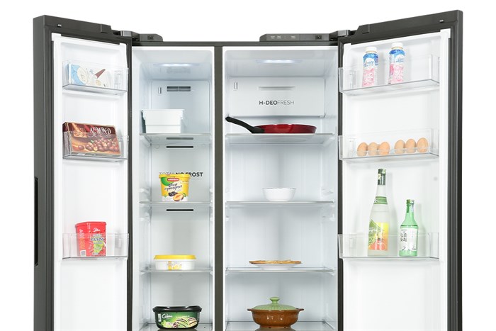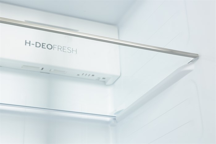Kháng khuẩn khử mùi H-DEO Fresh: khử mùi diệt khuẩn bằng ion bạc Ag+, ion đồng và chất liệu gốm, giúp ức chế sự phát triển của vi khuẩn và nấm mốc, từ đó giảm thiểu xuất hiện mùi hôi thực phẩm tối đa và giữ cho không gian bên trong tủ luôn được thông thoáng, sạch sẽ. Hơn nữa, công nghệ này cũng góp phần duy trì độ tươi ngon thực phẩm trong suốt thời gian bảo quản.
