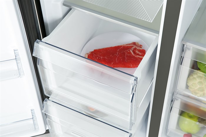 – Khu vực ngăn đá được thiết kế bên trái của sản phẩm, có dung tích 238 lít giúp cấp đông thực phẩm tối ưu.