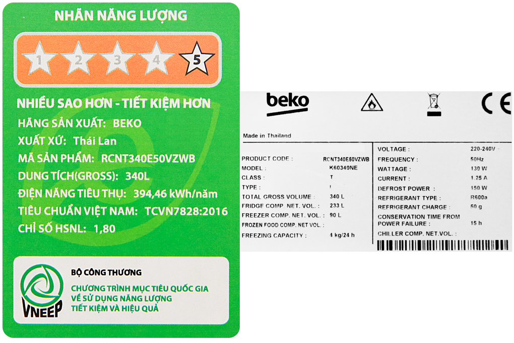Tủ lạnh Beko RCNT340E50VZWB sở hữu dung tích 323 lít, đáp ứng khả năng lưu trữ thực phẩm cho những hộ gia đình có từ 3 – 4 thành viên với dung tích ngăn lạnh 233 lít và dung tích ngăn đá 90 lít.