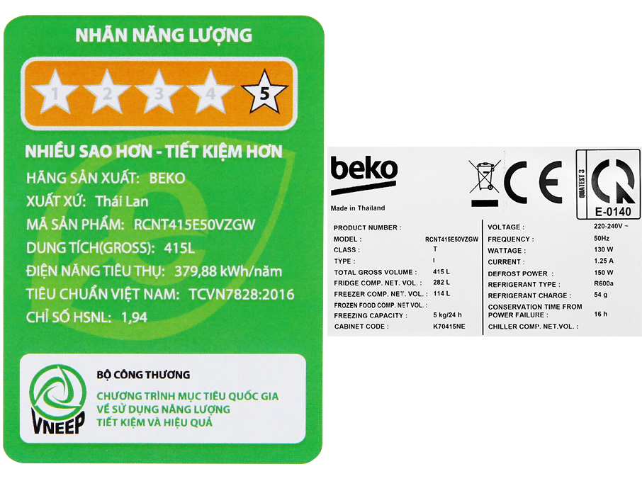Chiếc tủ lạnh Beko này có dung tích 396 lít phù hợp với gia đình có 3 – 4 thành viên.