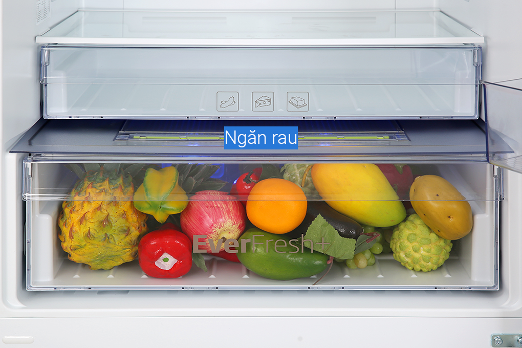 Ngăn rau củ của tủ lạnh Beko sẽ được chiếu sáng bởi ánh sáng xanh được mô phỏng theo ánh sáng tự nhiên, giả lập sự quang hợp của ánh sáng mặt trời, nhờ vậy trái cây và rau củ được tươi hơn và duy trì tối đa lượnng vitamin C của chúng trong thời gian dài.