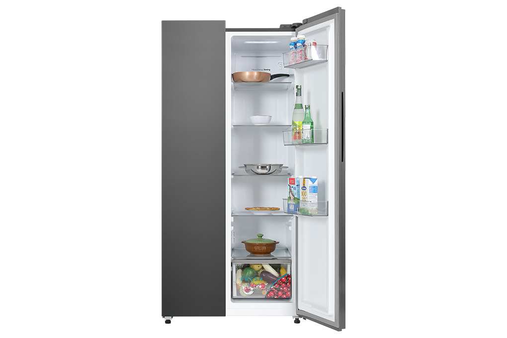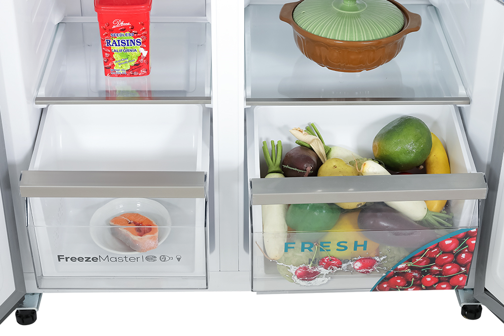 – Mẫu tủ lạnh này có ngăn đá nằm ở mặt bên trái của tủ, chứa nhiều khay, ngăn và hộc đựng để người dùng phân chia thực phẩm gọn gàng theo thói quen của mình.
