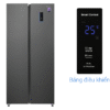 – Kiểu dáng: là mẫu tủ lạnh Side by Side với 2 cánh làm từ thép không gỉ màu đen – xám sang trọng, chất liệu không bám dấu vân tay, dễ dàng vệ sinh.