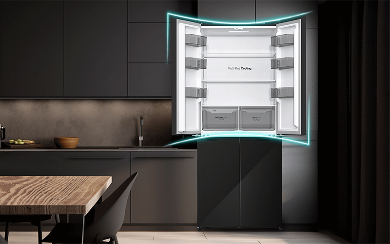 Multi Air Flow: luồng khí lạnh đa chiều, đảm bảo nhiệt độ đồng đều khắp các ngăn tủ.