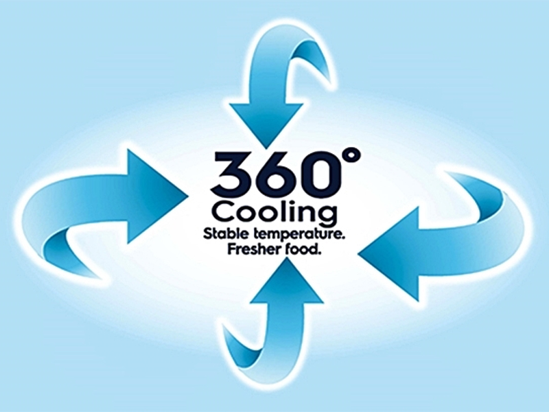 Tủ lạnh Electrolux ETB2802H-H màu đen có công nghệ làm lạnh xoay chiều 360 Cooling làm mát đồng đều khắp tủ lạnh, đảm bảo mọi vị trí trong tủ đều duy trì ở một nhiệt độ ổn định.