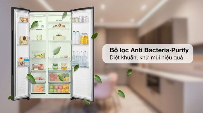 Cụ thể sản phẩm sử dụng bộ lọc Anti Bacteria·Purify tiên tiến với nhiều lớp lọc có chứa chất kháng khuẩn, khử mùi giúp loại bỏ mùi hôi khó chịu, vi khuẩn, nấm mốc để không gian tủ lạnh luôn thoáng sạch, an toàn, không gây hại cho thực phẩm.