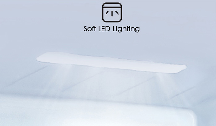 - Hệ thống đèn LED: Hệ thống chiếu sáng LED được thiết kế ở mọi ngóc ngách trong tủ lạnh. Vì vậy, không còn khoảng tối hoặc góc khuất, mỗi phần trong tủ đều được chiếu sáng đều đặn, giúp bạn tận dụng mọi không gian để tổ chức thực phẩm một cách dễ dàng và khoa học.