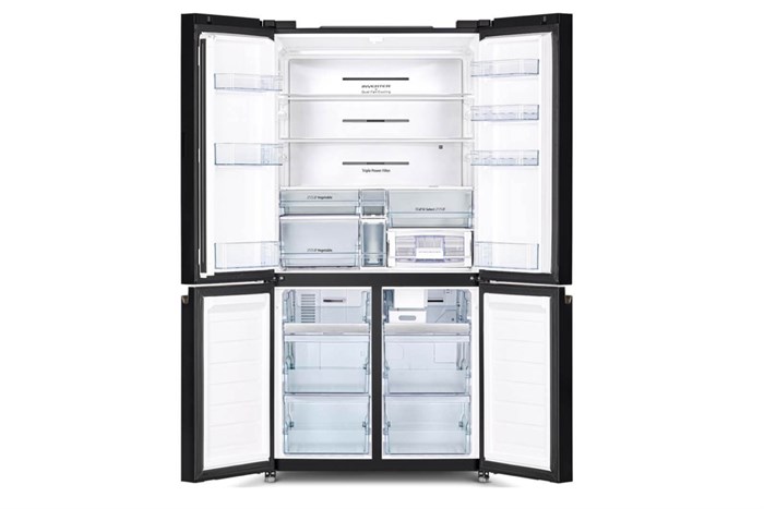 – Kiểu dáng: thuộc dòng tủ lạnh Multi Door trang bị 4 cánh cửa với chất liệu mặt kính sáng bóng. Thiết kế phẳng kết hợp cùng tông màu xám thanh lịch mang đến vẻ ngoài sang trọng, thời thượng từ mọi góc nhìn cho sản phẩm và không gian nội thất của gia đình.
