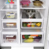 Tủ có dung tích 605 lít thích hợp cho gia đình có nhiều thành viên trên 5 thành viên, các khay kệ được sắp xếp hợp lý tạo được nhều không gian trống cho phép người dùng lưu trữ được nhiều thực phẩm hơn.