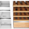 Kệ gỗ với hệ thống ray trượt giúp giảm rung và giữ lại hương vị của rượu. Thiết kế linh hoạt cho phép bạn điều chỉnh chiều cao của các kệ để tạo không gian cho các chai rượu có kích thước khác nhau.