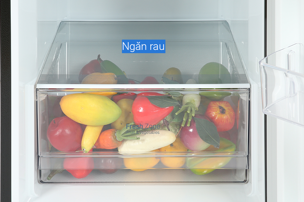 – Ngăn rau dạng kéo nên giữ ẩm tối ưu cho rau củ và tránh lẫn mùi.