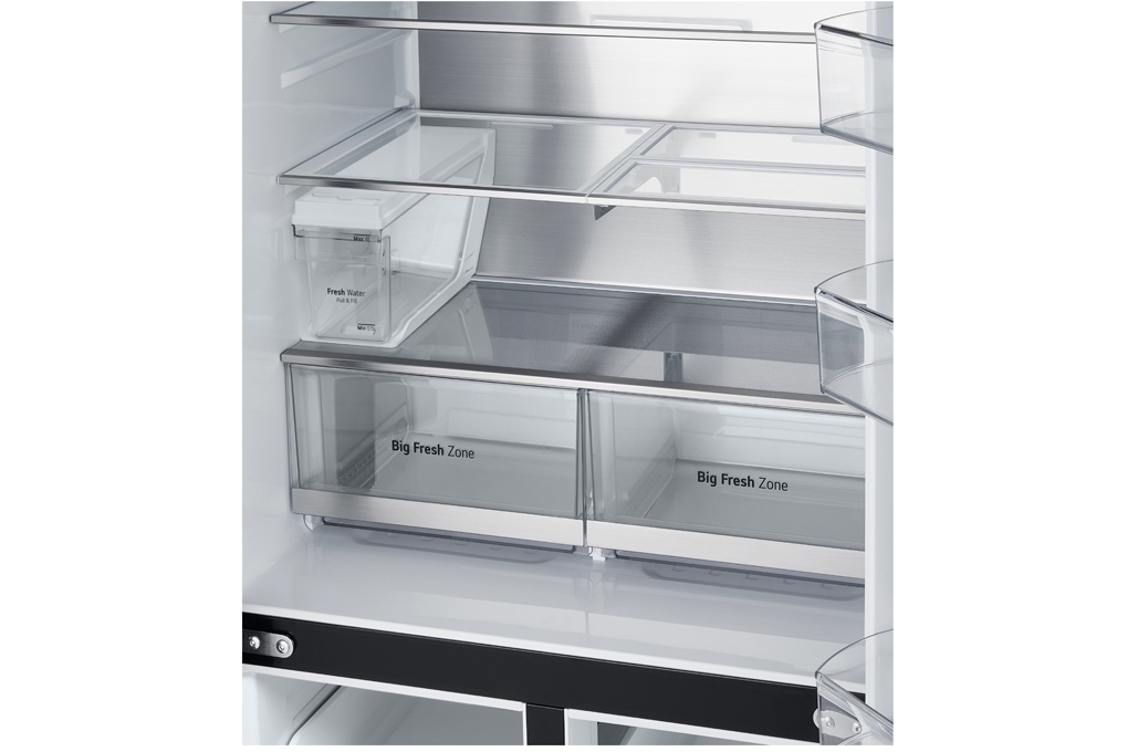 – Vị trí dưới cùng của ngăn lạnh là ngăn giữ ẩm rau củ Big Fresh Zone được thiết kế theo dạng hộp kín, cung cấp khả năng giữ ẩm giúp bảo quản các loại rau củ luôn tươi ngon và không bị ôi thiu.