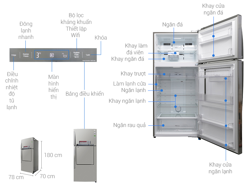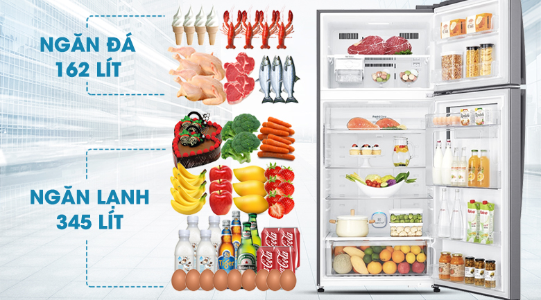 Tủ lạnh LG Inverter này có dung tích lên đến 512 lít, rất phù hợp cho những gia đình có 4 – 5 thành viên hoặc có thói quen lưu giữ thực phẩm nhiều.