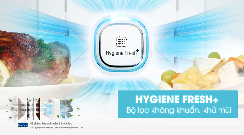 Bộ lọc Hygiene Fresh+ hoạt động như một máy lọc không khí được tích hợp bên trong tủ lạnh. Không khí sẽ được lọc qua 5 bước nên sẽ đảm bảo rằng môi trường bên trong tủ luôn thanh sạch và an toàn. Loại bỏ hoàn toàn vi khuẩn và những mùi hôi khó chịu của thực phẩm, mang lại bữa ăn đảm bảo dinh dưỡng và trọn vị ngon cho người dùng.