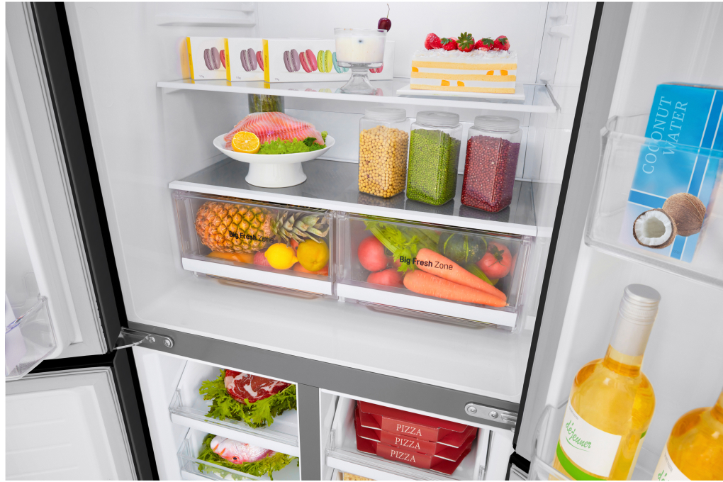 – Ngăn chứa rau quả Big Fresh Zone: Với chế độ điều chỉnh cho rau củ và trái cây riêng biệt để bảo quản tốt hơn, tăng 20% khả năng giữ ẩm để thực phẩm tươi ngon lâu hơn, bảo toàn dưỡng chất và hương vị tốt hơn khi sử dụng.