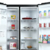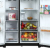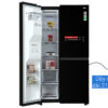 – Đây là mẫu tủ lạnh Side by side với chất liệu cửa tủ là thép không gỉ màu đen nhám sang trọng, hiện đại. Phần tay cầm được thiết kế âm tủ tạo vẻ ngoài tinh tế, tối giản.