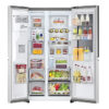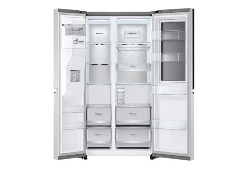 – Đây là mẫu tủ lạnh thiết kế Side by side với chất liệu cửa tủ bằng thép không gỉ, màu bạc sang trọng.
