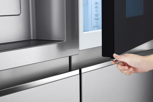 – Đặc biệt là thiết kế Door-in-Door khi gõ 2 lần lên cánh tủ là có thể nhìn thấu bên trong, nhờ đó giảm thất thoát khí lạnh và giúp rau quả được bảo quản lâu hơn.