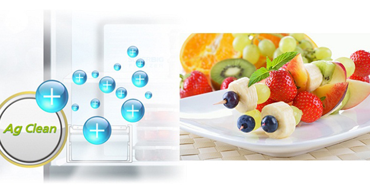 Công nghệ kháng khuẩn tinh thể bạc Ag Clean sử dụng các ion Ag có khả năng tiêu diệt 99,9% nấm mốc và vi khuẩn bên trong ngăn tủ, ngăn chặn sự hình thành của vi khuẩn và mùi hôi khó chịu, giúp bảo quản thực phẩm tốt hơn và bảo vệ sức khỏe cho gia đình bạn.