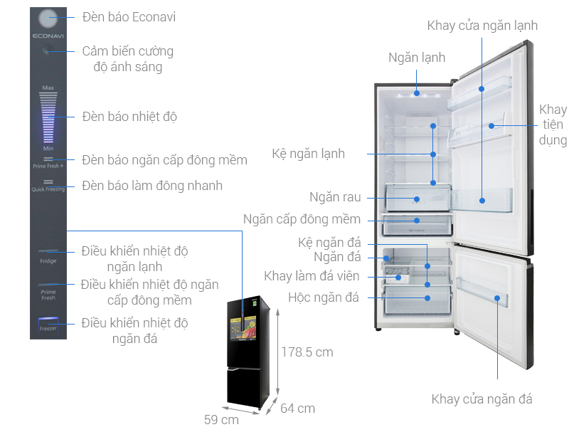 Công nghệ Econavi với khả năng nhận biết, nhiệt độ trong và ngoài tủ, tần suất mở đóng tủ, từ đó điều chỉnh công suất hoạt động, nhiệt độ sao cho phù hợp nhất tiết kiệm năng lượng điện mà không làm ảnh hưởng đến quá trình bảo quản thực phẩm trong tủ.