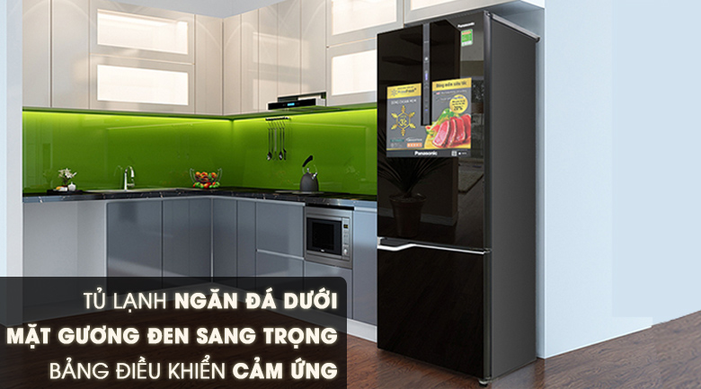 Tủ lạnh Panasonic Inverter 322 lít NR-BV368GKV2 có thiết kế mặt gương với tông màu đen quý phái, tủ có bảng điều khiển cảm ứng ngoài tạo thêm vẻ hiện đại và dễ dàng hơn cho bạn mỗi khi cần điều chỉnh tủ. Với kiểu dáng sang trọng, bắt mắt chiếc tủ lạnh ngăn đá dưới này sẽ dễ dàng phù hợp với nhiều không gian nội thất.