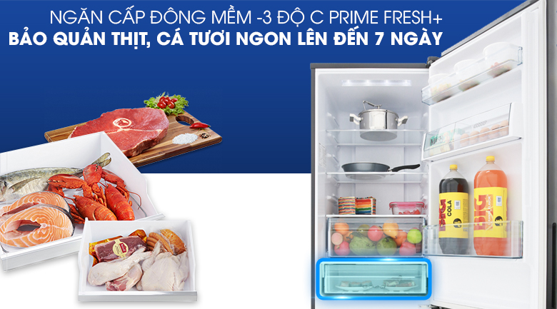 Ngăn đông Prime Fresh Plus trên chiếc tủ lạnh Inverter này bảo quản thực phẩm ở nhiệt độ -3 độ C mà không làm đông đá lên đến 7 ngày mà, giúp cho bạn không phải chờ rã đông sau đó mới chế biến được. Ngoài ra ngăn đông mềm thiết kế dạng kín chống lẫn mùi, giữ lại độ tươi ngon lâu nhất cho thực phẩm.