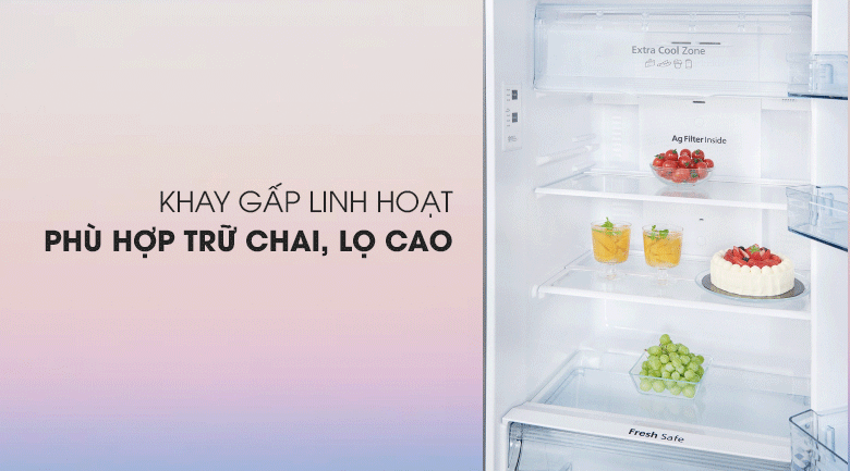 Chiếc tủ lạnh Inverter này sử dụng khay kính cường lực, có khả năng chịu tải lên tới 100kg, vượt trội hơn hẳn so với các loại tủ lạnh thông thường hiện nay. Nhờ đó mà giờ đây bạn có thể thoải mái cất nồi hầm, chai lọ lớn và các món đồ nặng khác để bảo quản trong tủ lạnh.