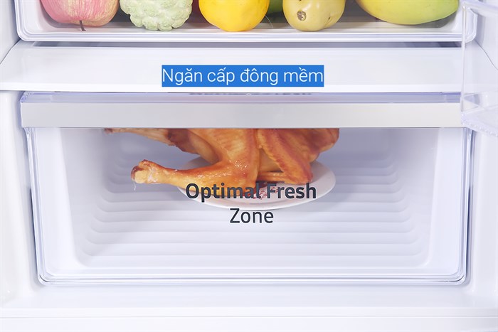 Tủ lạnh Samsung có ngăn đông mềm Optimal Fresh Zone -1°C là ngăn chuyên để trữ thịt cá sử dụng trong ngày. Thịt cá sẽ được cấp đông mềm ở nhiệt độ -1 độ C để đảm bảo vẫn giữ được nguyên vẹn dưỡng chất và độ tươi ngon. Và vì thực phẩm không bị đông đá nên có thể chế biến ngay không cần rã đông phiền phức.