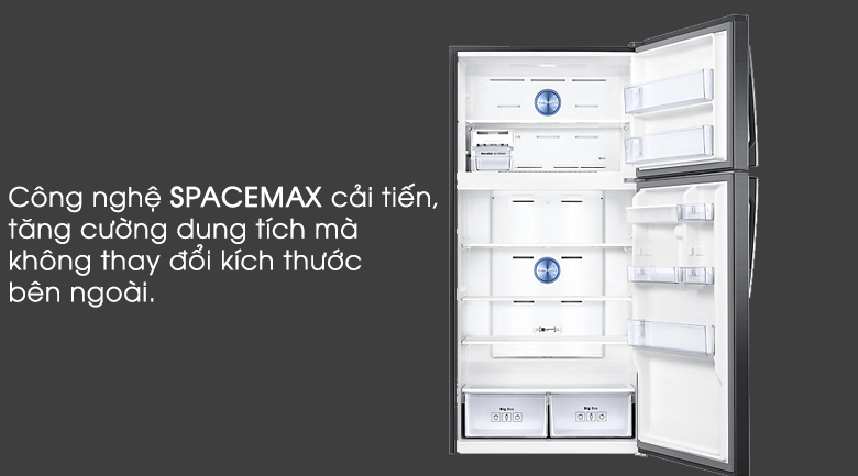 Điểm độc đáo phải nói đến của chiếc tủ lạnh Samsung này đó chính là công nghệ SPACEMAX cải tiến, hiện đại. Với công nghệ này, không gian bên trong tủ sẽ được nới rộng hơn, tăng cường diện tích mà vẫn không ảnh hưởng đến kích thước bên ngoài của tủ lạnh.