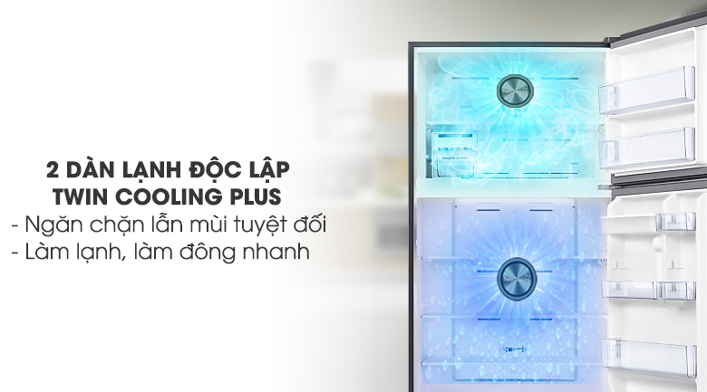 Sử dụng 2 dàn lạnh riêng cho từng ngăn chứa, công nghệ Twin Cooling Plus của tủ lạnh Samsung RT58K7100BS/SV giúp quá trình làm lạnh và làm đông được diễn ra nhanh chóng, đồng thời không làm thực phẩm giữa các ngăn bị luân chuyển, lẫn mùi vào nhau, hạn chế được mùi hôi bên trong tủ cũng như giữ được độ thơm ngon cho từng món ăn.