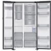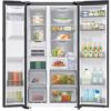Tủ lạnh Side by Side Samsung RS80F65J2BSV nổi bật với thiết kế Side By Side hai cánh rộng rãi, phủ lớp hoàn thiện màu bạc ánh kim (Stainless Steel) cao cấp, mang lại vẻ đẹp tinh tế và hiện đại. Tay nắm ẩn được tích hợp khéo léo vào thân tủ, tạo nên bề mặt phẳng mượt mà, không chỉ thẩm mỹ mà còn dễ lau chùi, giữ cho tủ luôn sáng bóng như mới.