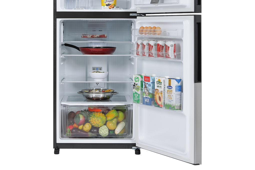 – Được trang bị các kệ bằng kính chịu lực có độ bền cao để tăng không gian sắp xếp thực phẩm. Phần cánh cửa tủ cũng có các khay kệ để người dùng có thể đặt để các loại chai lọ tiện lợi. Đặc biệt là có ngăn rau để bảo quản các loại thực phẩm cần độ ẩm cao như rau củ, trái cây.
